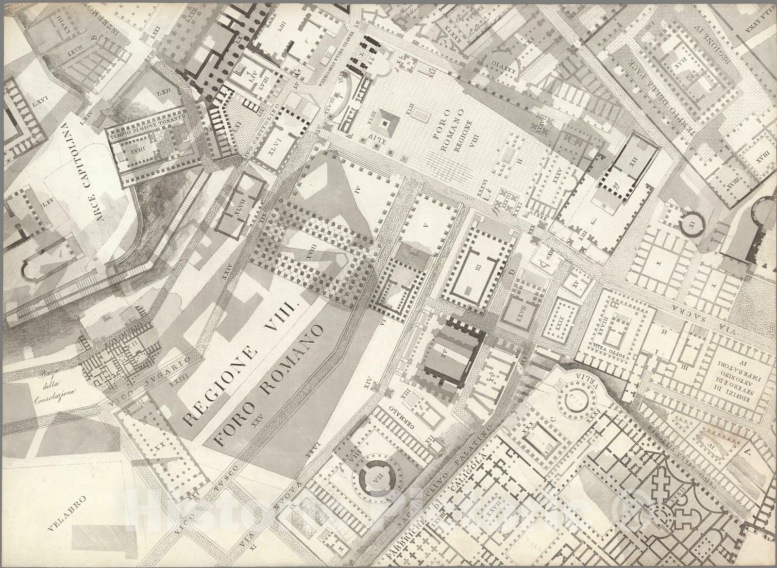 Historic Map : Italy , Rome (Italy), TAV VIII .B Pianta topografica della parte media di Roma antica 1847 , Vintage Wall Art