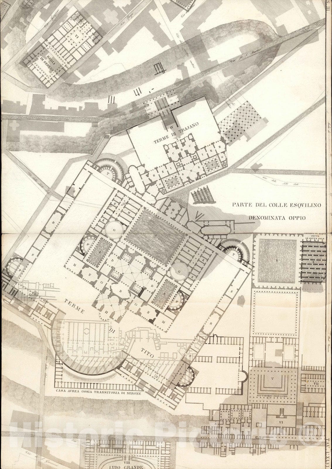 • .Historic Map : Italy , Rome (Italy), TAV X .A-B Pianta topografica della parte media di Roma antica 1847 , Vintage Wall Art