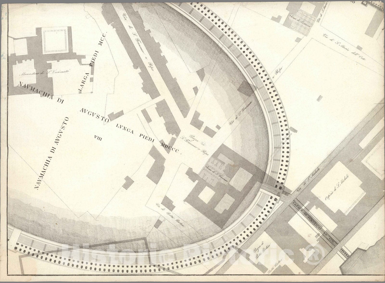 Historic Map : Italy , Rome (Italy), TAV XI .B Pianta topografica della parte media di Roma antica 1847 , Vintage Wall Art