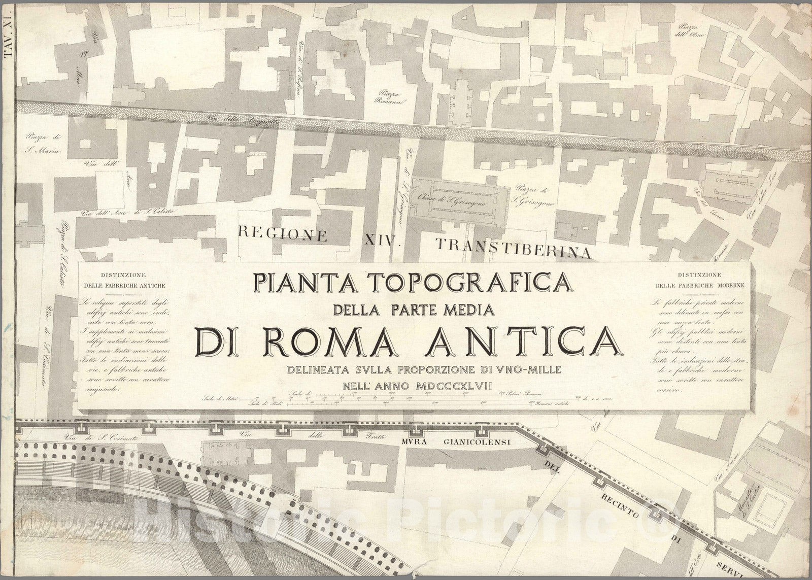 Historic Map : Italy , Rome (Italy), TAV XI .A Pianta topografica della parte media di Roma antica 1847 , Vintage Wall Art
