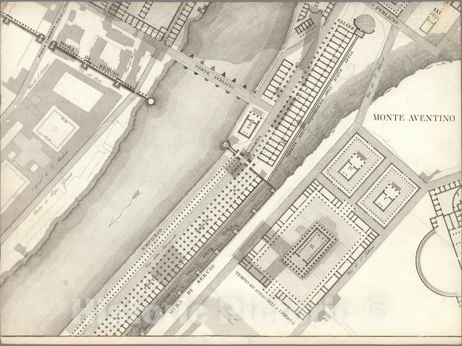Historic Map : Italy , Rome (Italy), TAV XII .B Pianta topografica della parte media di Roma antica 1847 , Vintage Wall Art