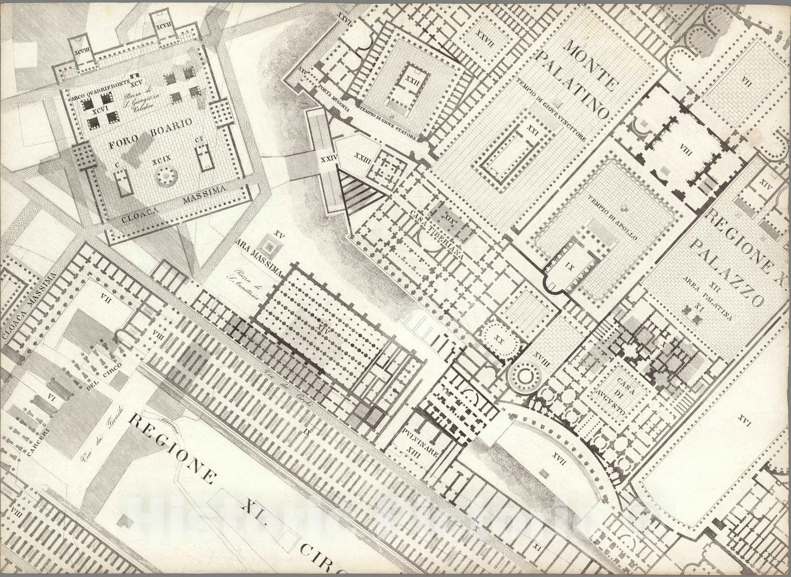 • .Historic Map : Italy , Rome (Italy), TAV XIII .A Pianta topografica della parte media di Roma antica 1847 , Vintage Wall Art