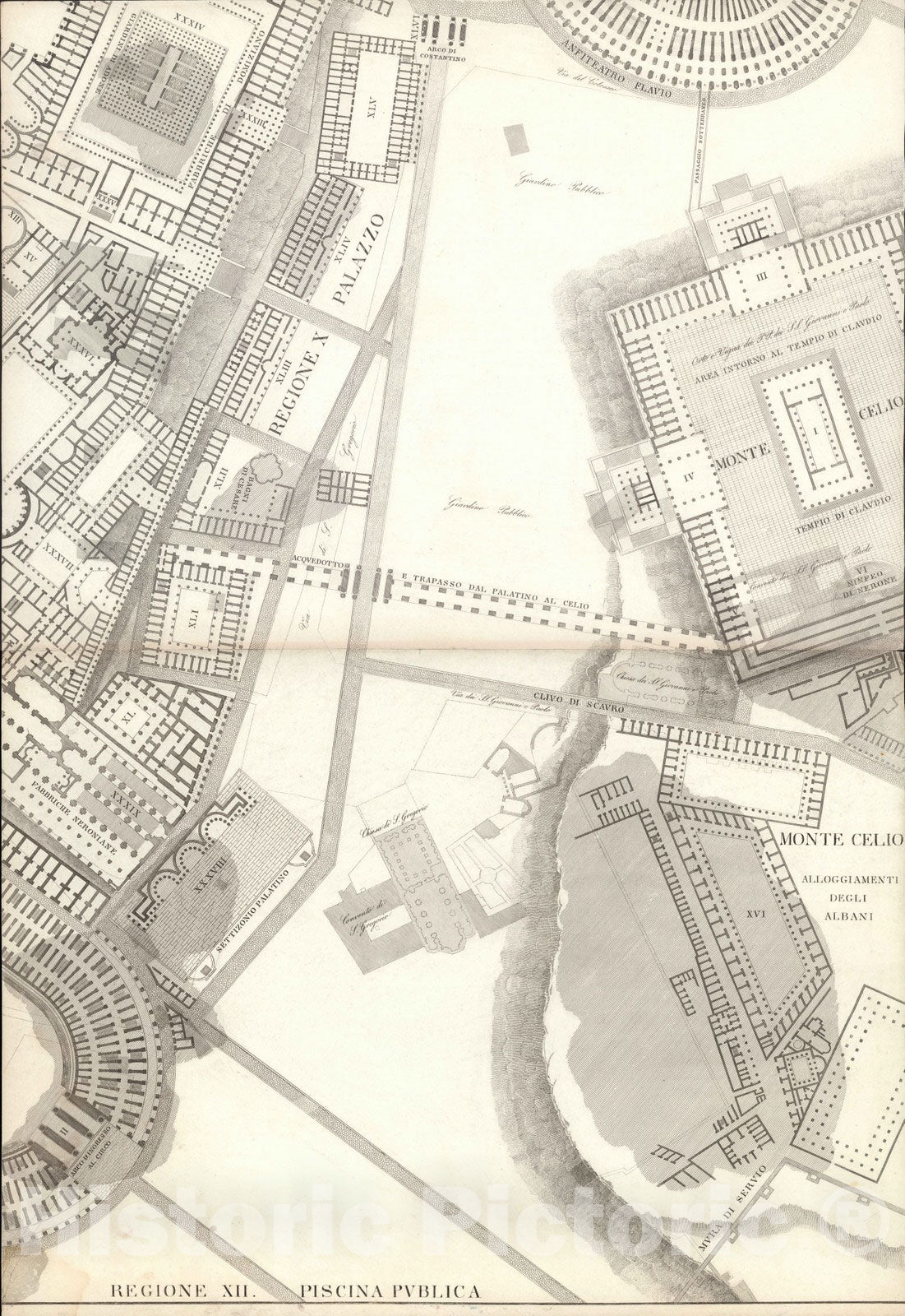 • .Historic Map : Italy , Rome (Italy), TAV XIV .A-B Pianta topografica della parte media di Roma antica 1847 , Vintage Wall Art