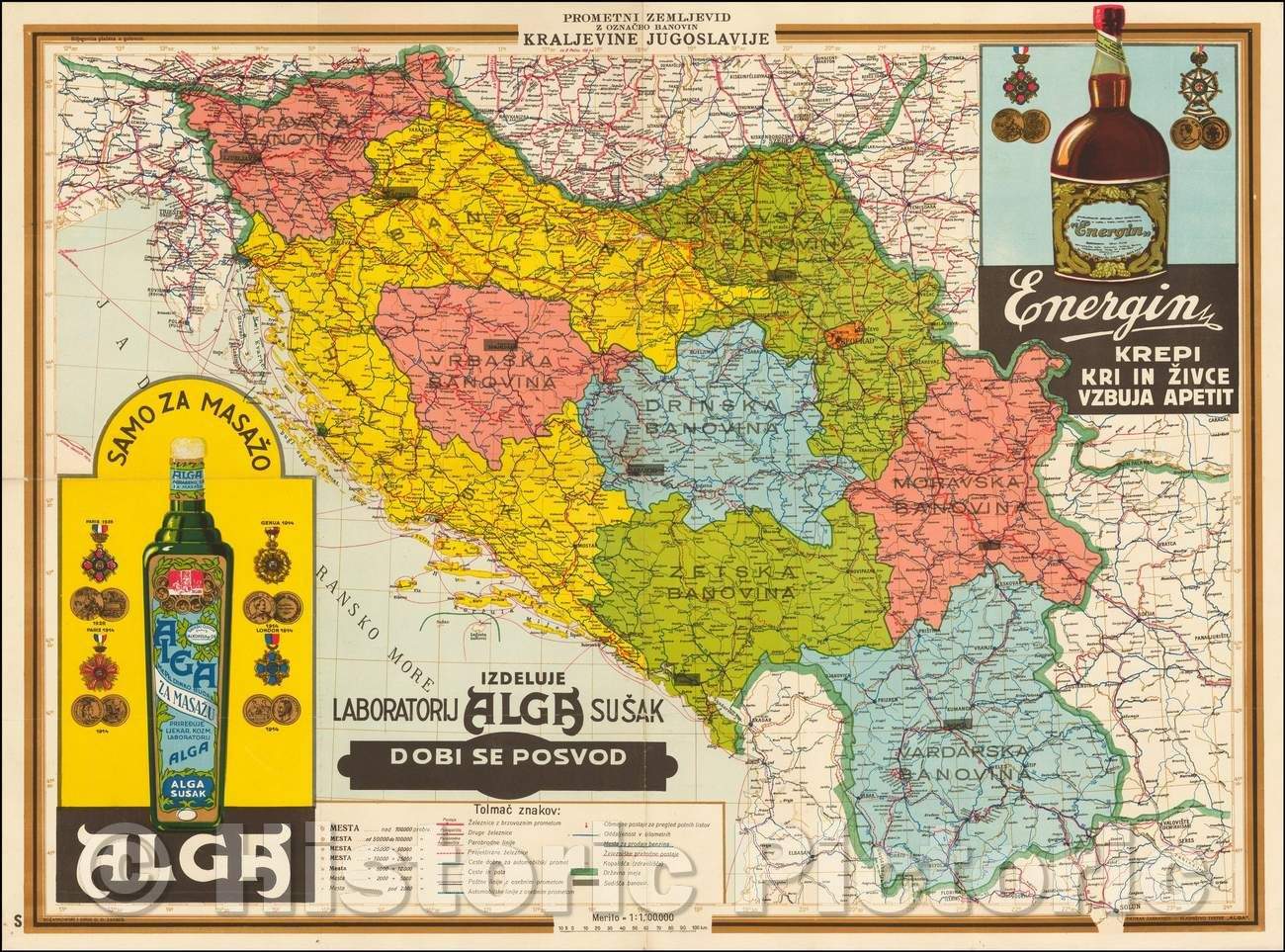 Historic Map - [Kingdom of Yugoslavia] Prometni Zemljevid z oznacbo Banovin Kraljevine Ju, 1929 - Vintage Wall Art