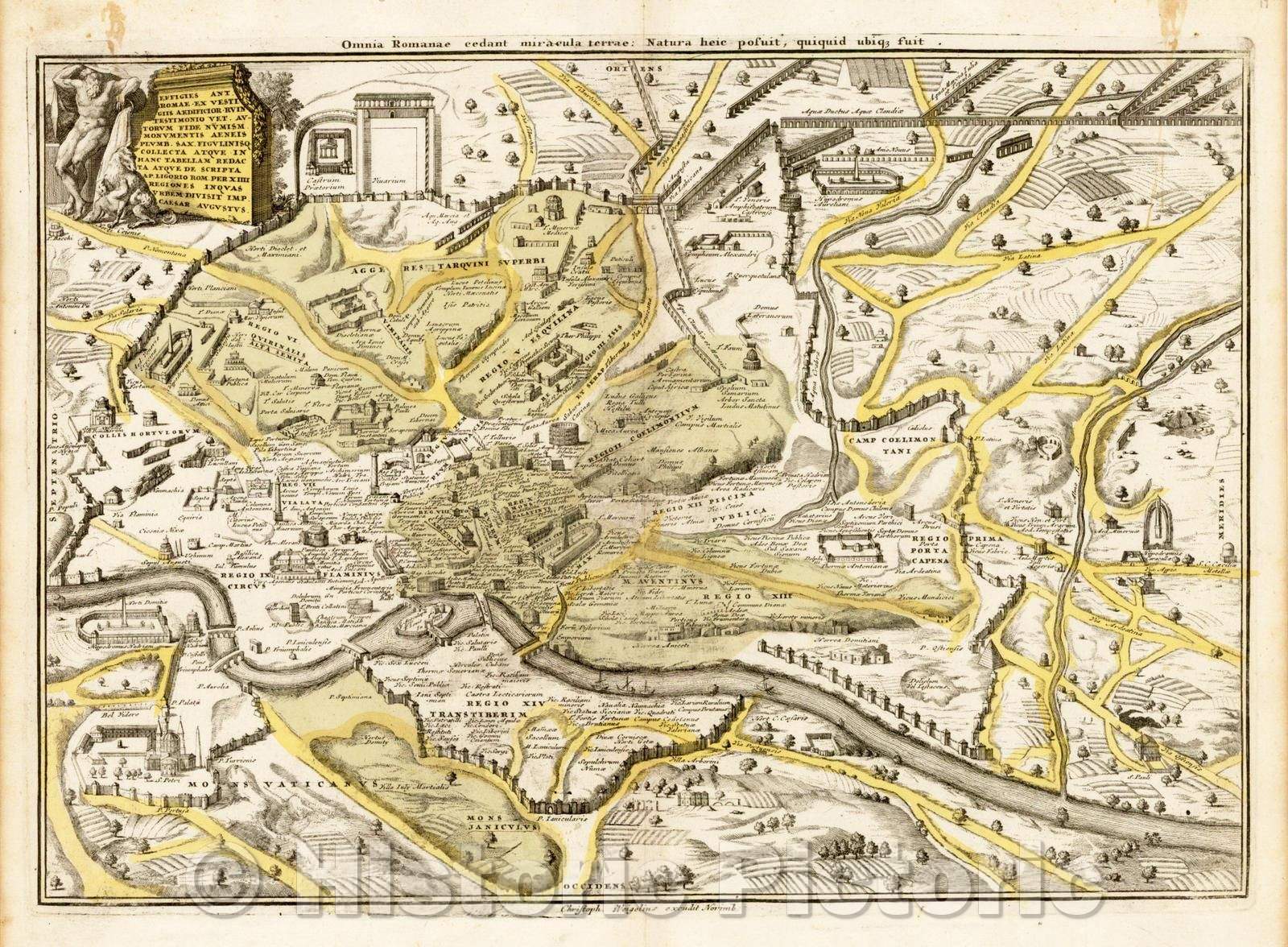Historic Map - Omnia Romanae ceant miracula terra: Natura heic posuit, quiquid ubique/Map of Rome, Roman Empire, various monuments of ancient Rome, 1718 - Vintage Wall Art