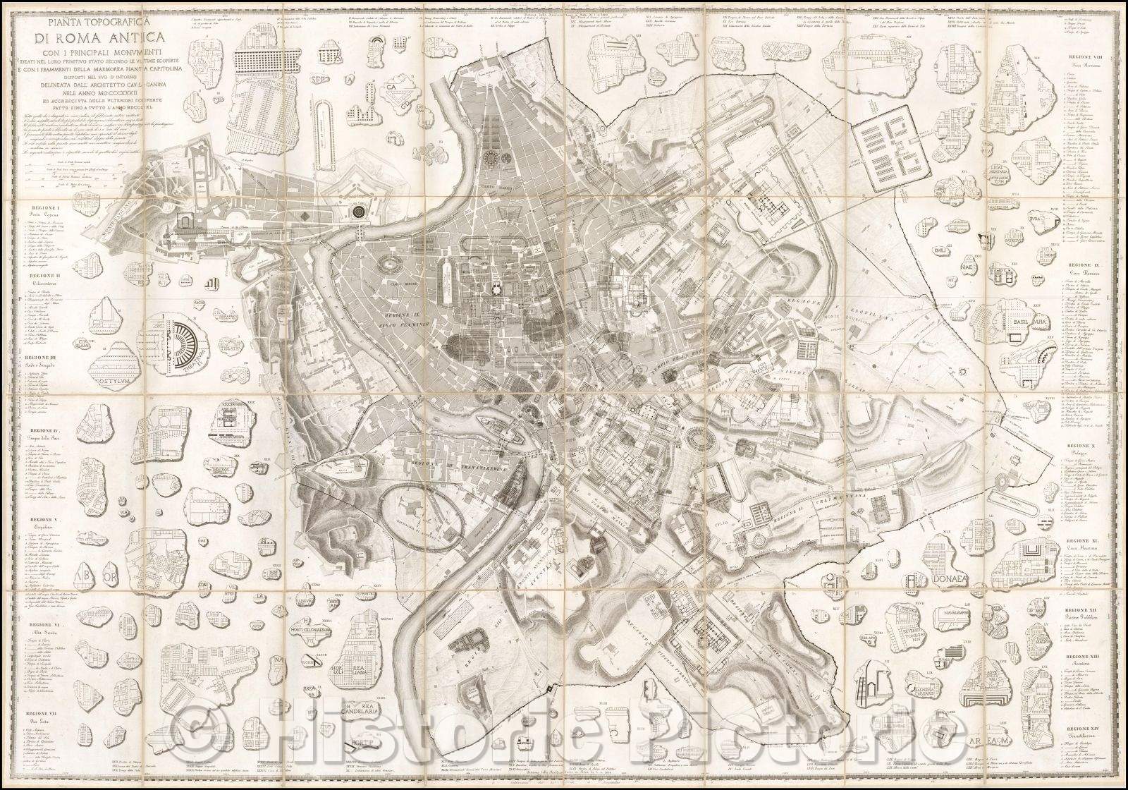 Historic Map - Pianta Topografica Di Roma Antica Con I Principali Monumenti Ideati Nel Loro/Archaeological Map of Rome, 1850, Luigi Canina - Vintage Wall Art