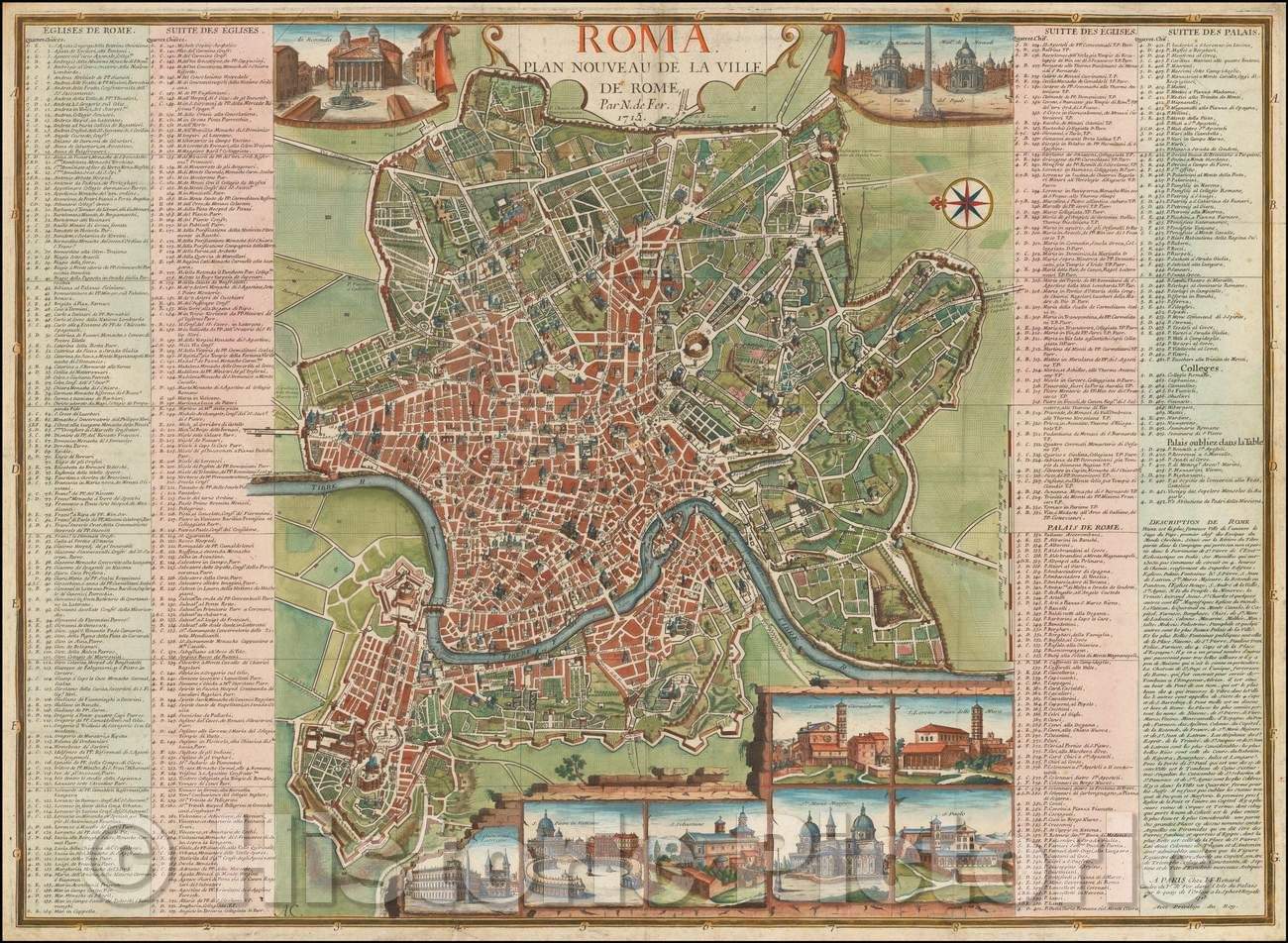 • .Historic Map - Roma Plan Nouveau De La Ville De Rome, 1713, Nicolas de Fer v2