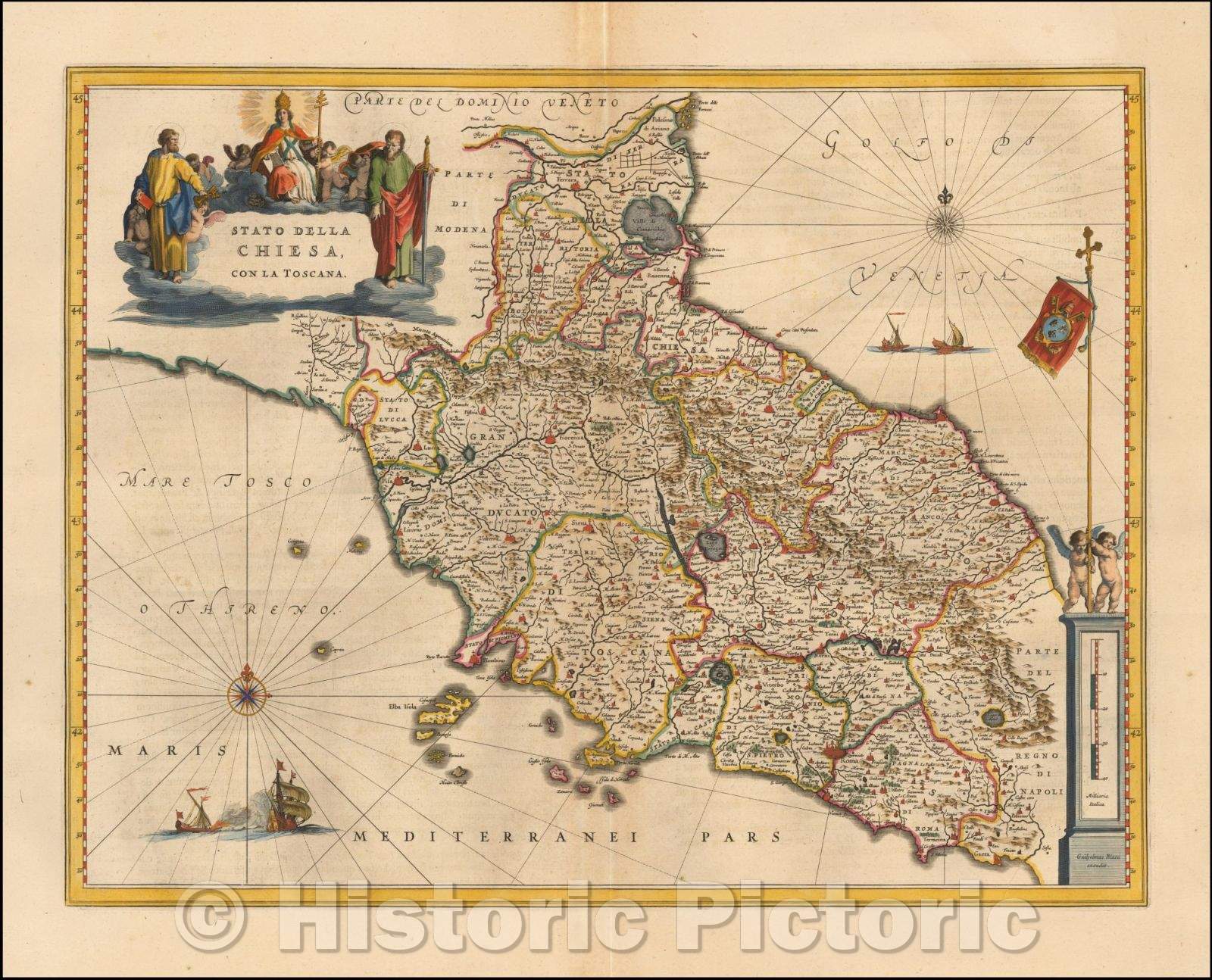 Historic Map - Stato Della Chiesa Con La Toscana Tuscany, Rome, Florence, Siena, Pisa, 1640, Willem Janszoon Blaeu - Vintage Wall Art