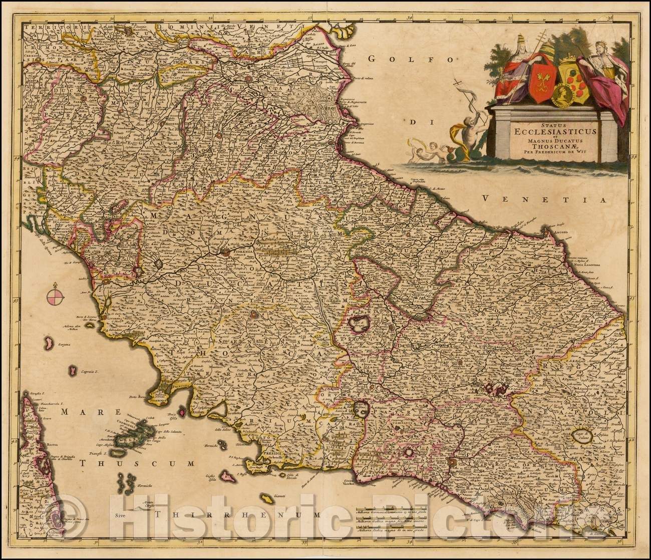 Historic Map - Status Ecclesiasticus Magnus Ducatus Thoscanae [Tuscany, Rome, Siena, Pisa :: Tuscany, Rome, Siena, Pisa, Florence, 1680 - Vintage Wall Art