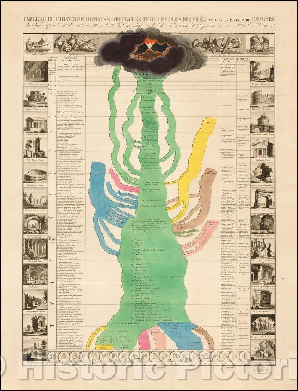 Historic Map - Tableau de l'histoire romaine depuis les tems les plus recul?/Wonderful engraved"time Map" history of Rome, 1984 BC to 500 AD, 1820 - Vintage Wall Art
