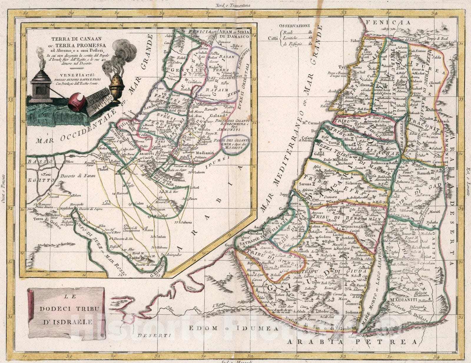 Historic Map : Terra di Canaan ov Terra Promessa ad Abramo. Le Dodeci Tribu dIsdraele, 1785, Vintage Wall Art