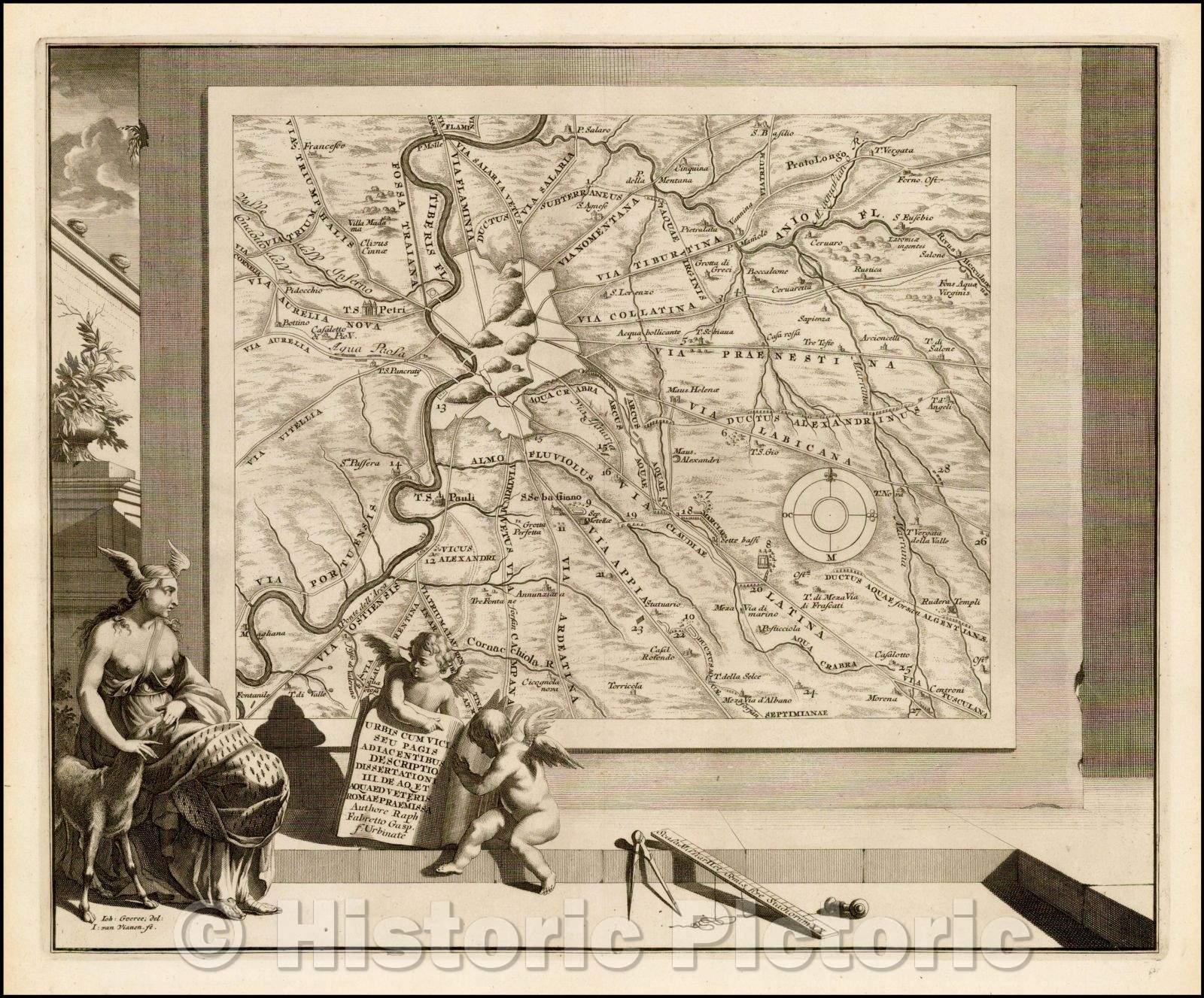 Urbis Cum Vicis Seu Pagis Adiacentibus Dissertationi III De Aq et Aqueaed Veteris / Map tableau, showing the water supply of Rome, 1704