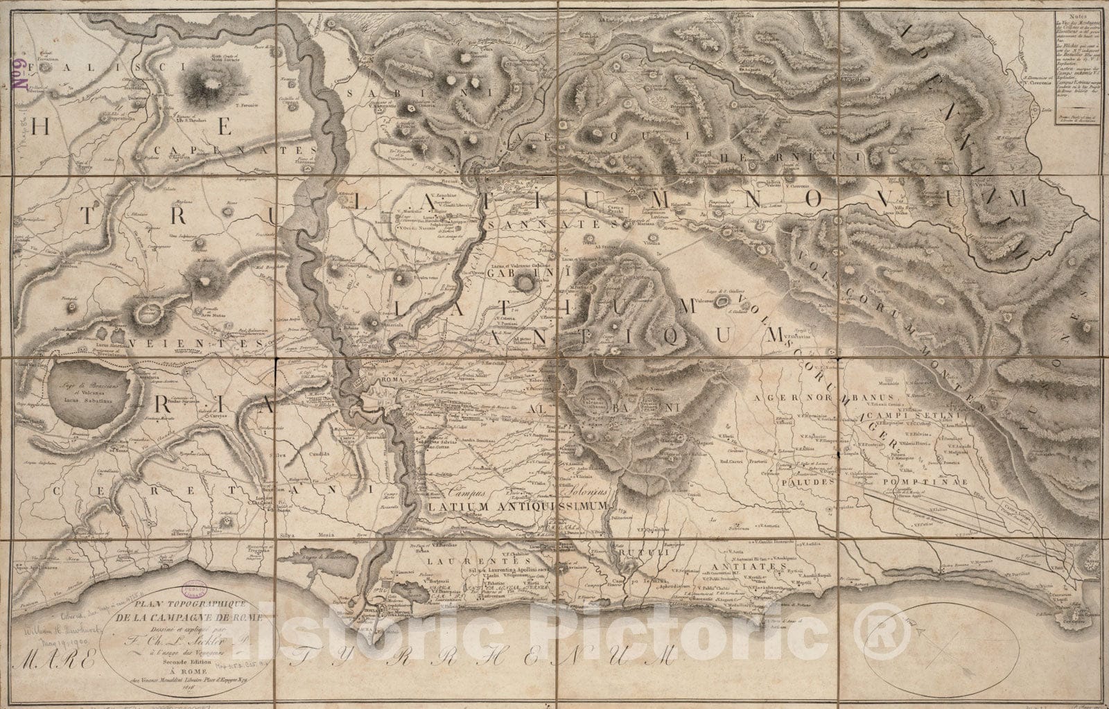 • Historical Map, 1816 Plan topographique de la campagne de Rome, Vintage Wall Art