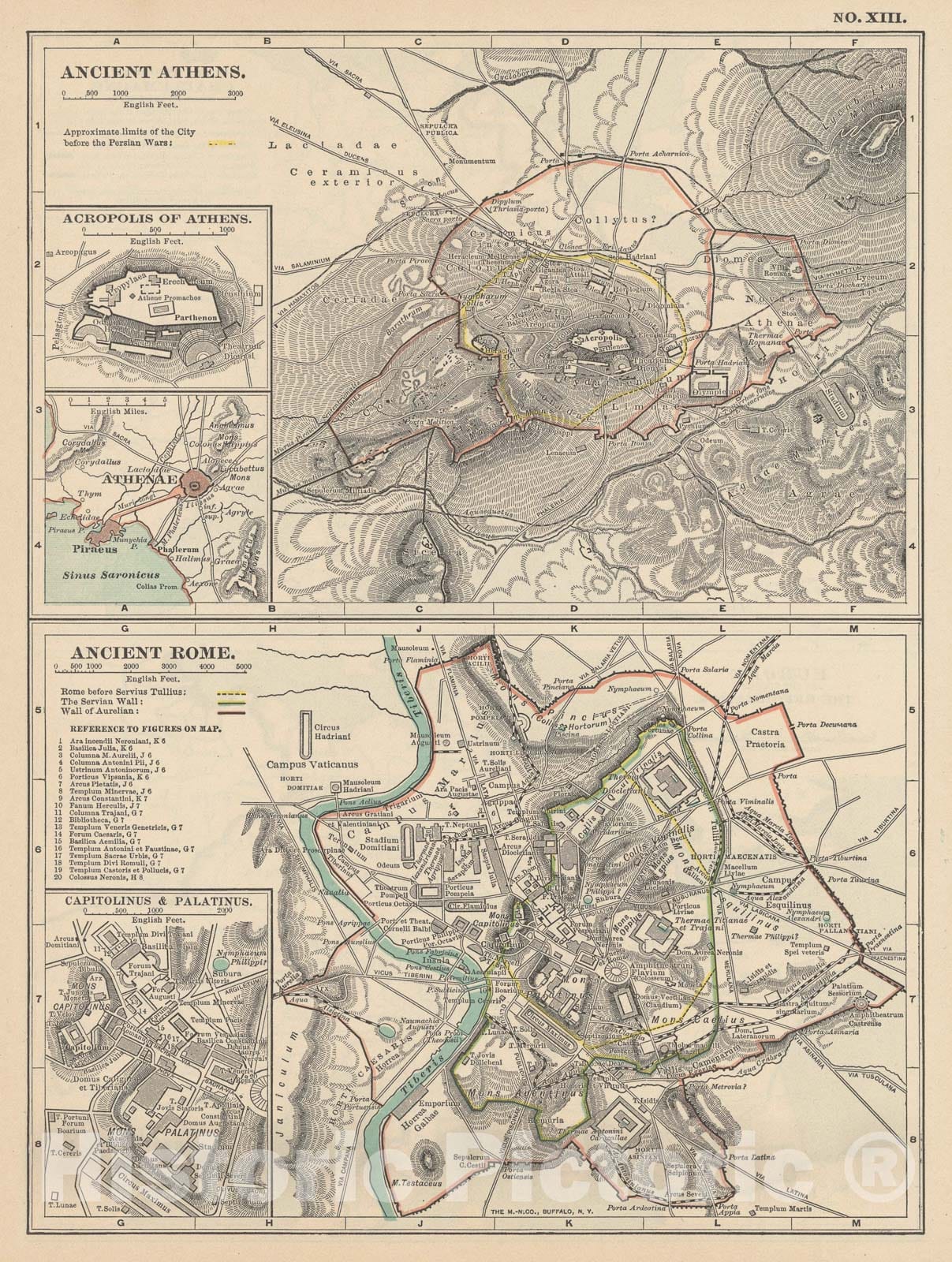 Historic Map : Athens & Rome 1914 , Century Atlas of the World, Vintage Wall Art