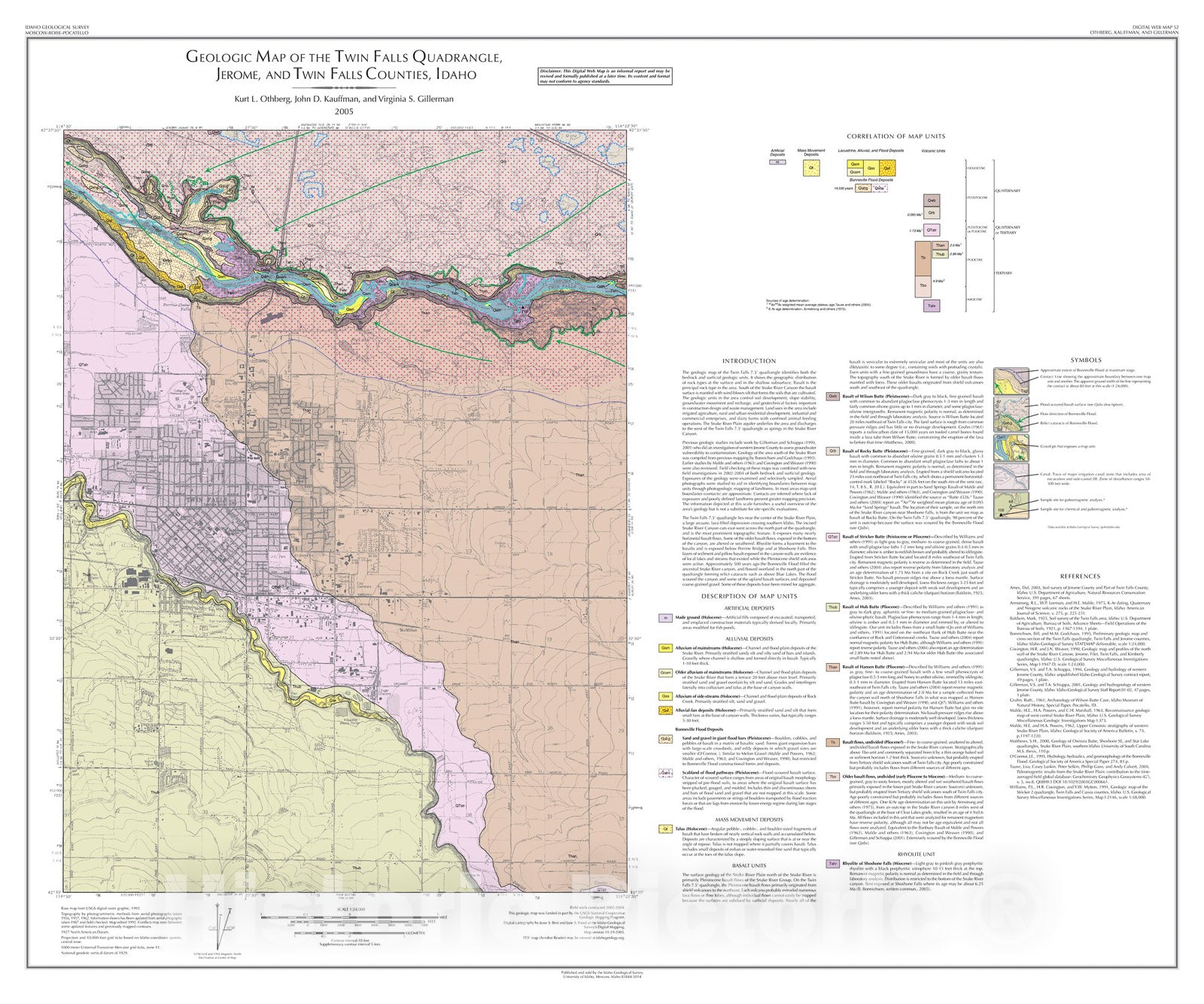 Map : Geologic Map of the Twin Falls Quadrangle, Jerome and Twin Falls Counties, Idaho, 2005 Cartography Wall Art :