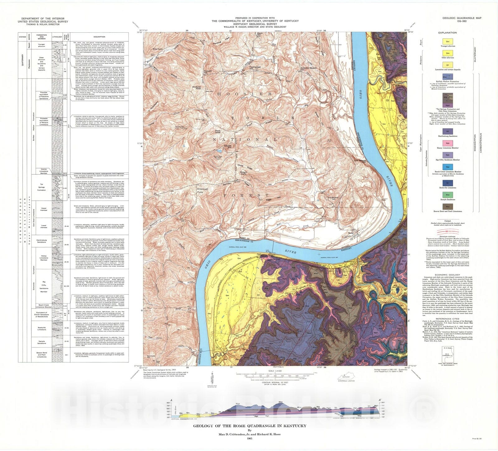 Map : Geology of the Rome quadrangle in Kentucky, 1965 Cartography Wall Art :