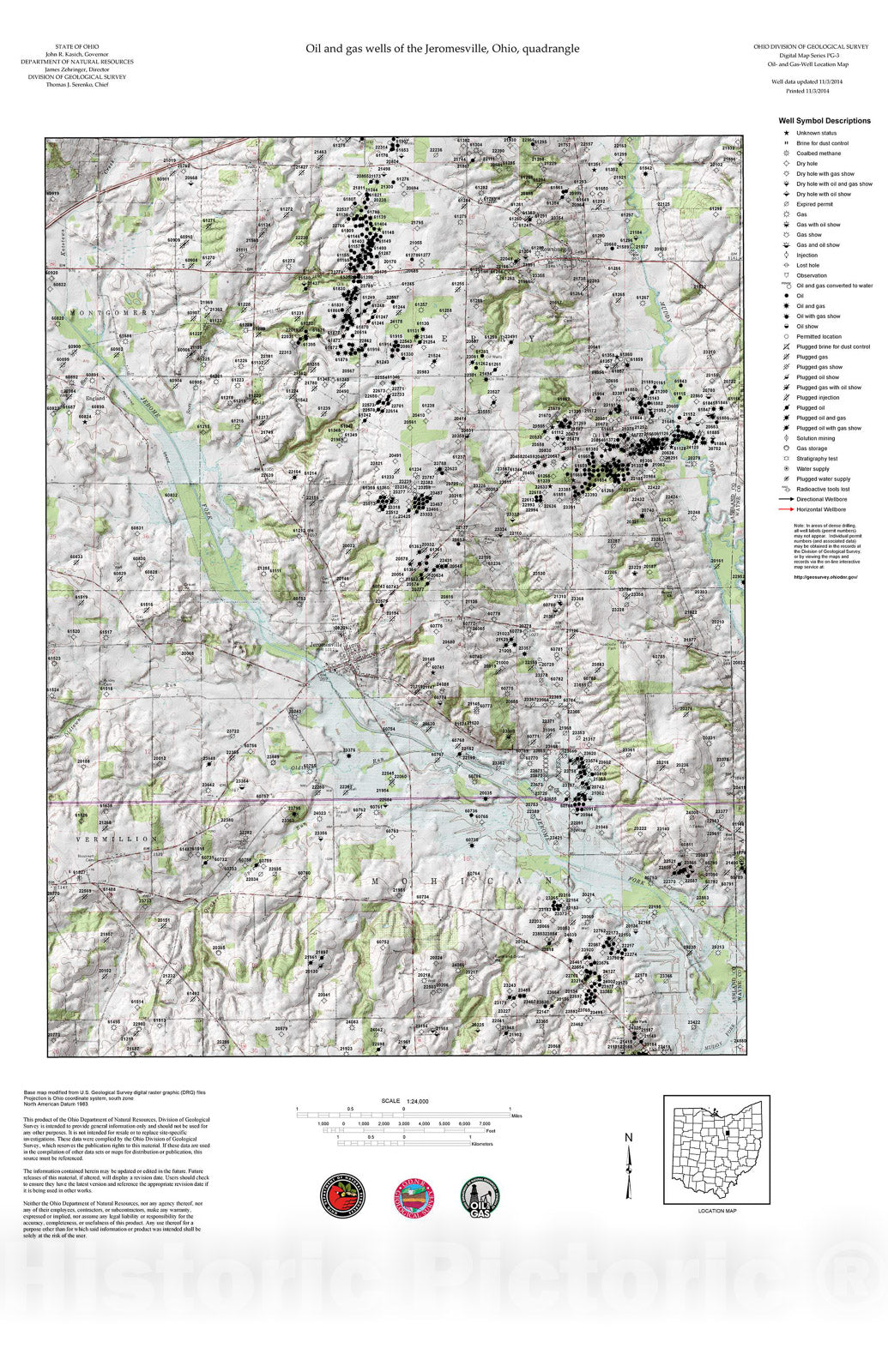 Map : Oil and gas wells of the Jeromesville quadrangle [Revised bi-weekly], 2006 Cartography Wall Art :