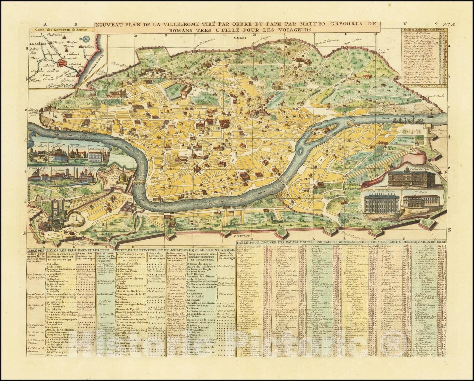 Historic Map : Nouveau Plan De La Ville De Rome Tire Pare Ordre Du Pape Par Mateo Gregoria De Romans Tres Utille Pour Les Voiageurs, 1719, Vintage Wall Art