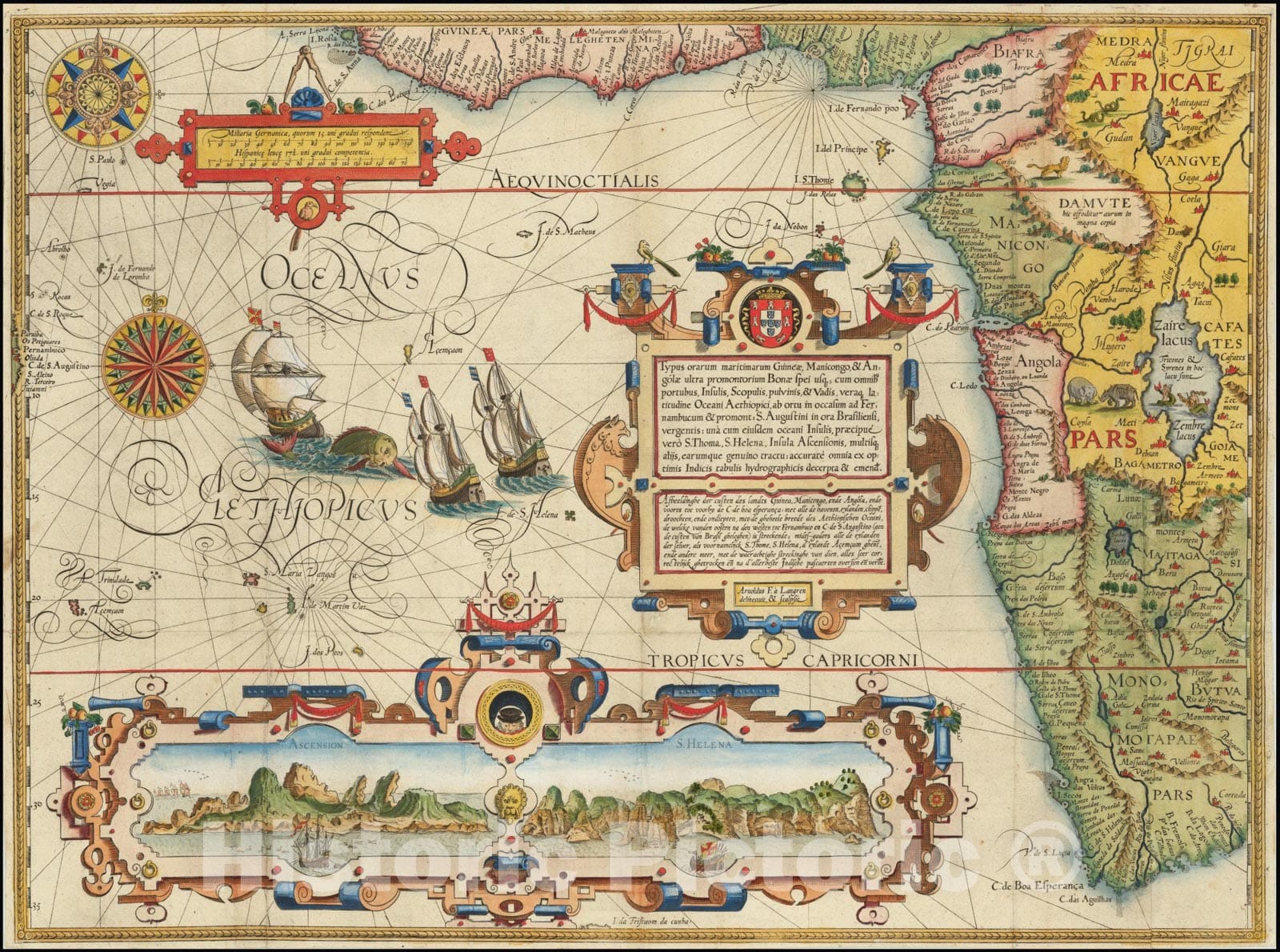Historic Map : Typus orarum maritimarum Guineae, Manicongo & Angolae ultra Promentorium Bonae spei susq, 1596, Vintage Wall Art