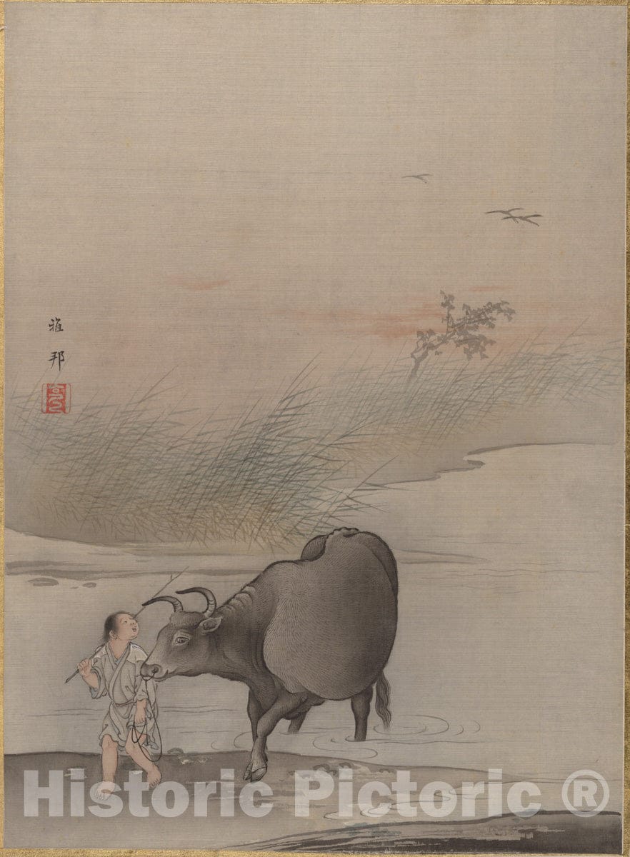 Art Print : Hashimoto Gahō - Boy with Cow at The River's Edge - Japan : Vintage Wall Art
