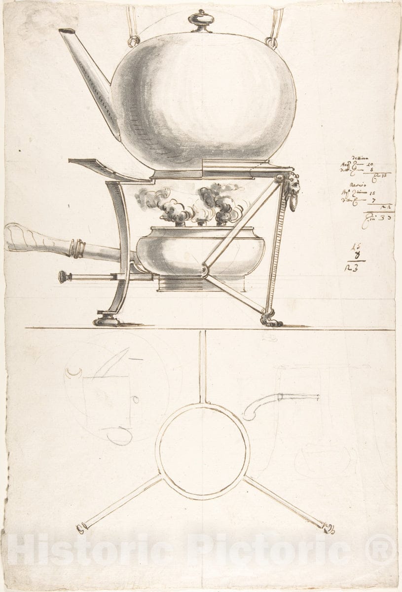 Kettle with Spirit Burner and Stand - Artist Nationality: Italian - Original Medium, Materials or Technique: Pen and wash