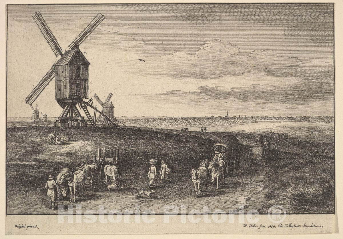 Art Print : Wenceslaus Hollar - The Four Windmills : Vintage Wall Art