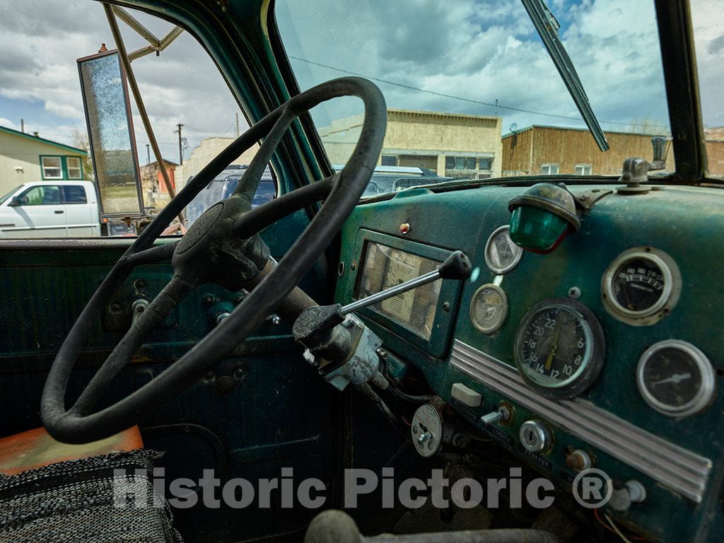 • Photo - A peek inside the well-kept cabin of a still-running 1942 International (brand) truck in Shoshoni, Wyoming- Fine Art Photo Reporduction