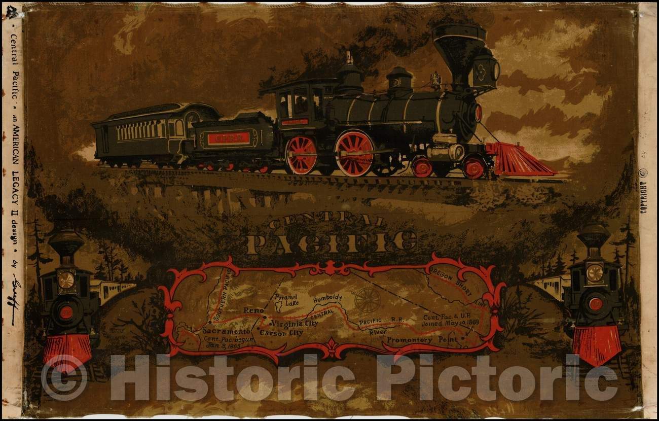 • .Historic Map - Central Pacific (with map illustrating the route from Promontory Point to Virginia City and Sacramento), 1900, - Vintage Wall Art