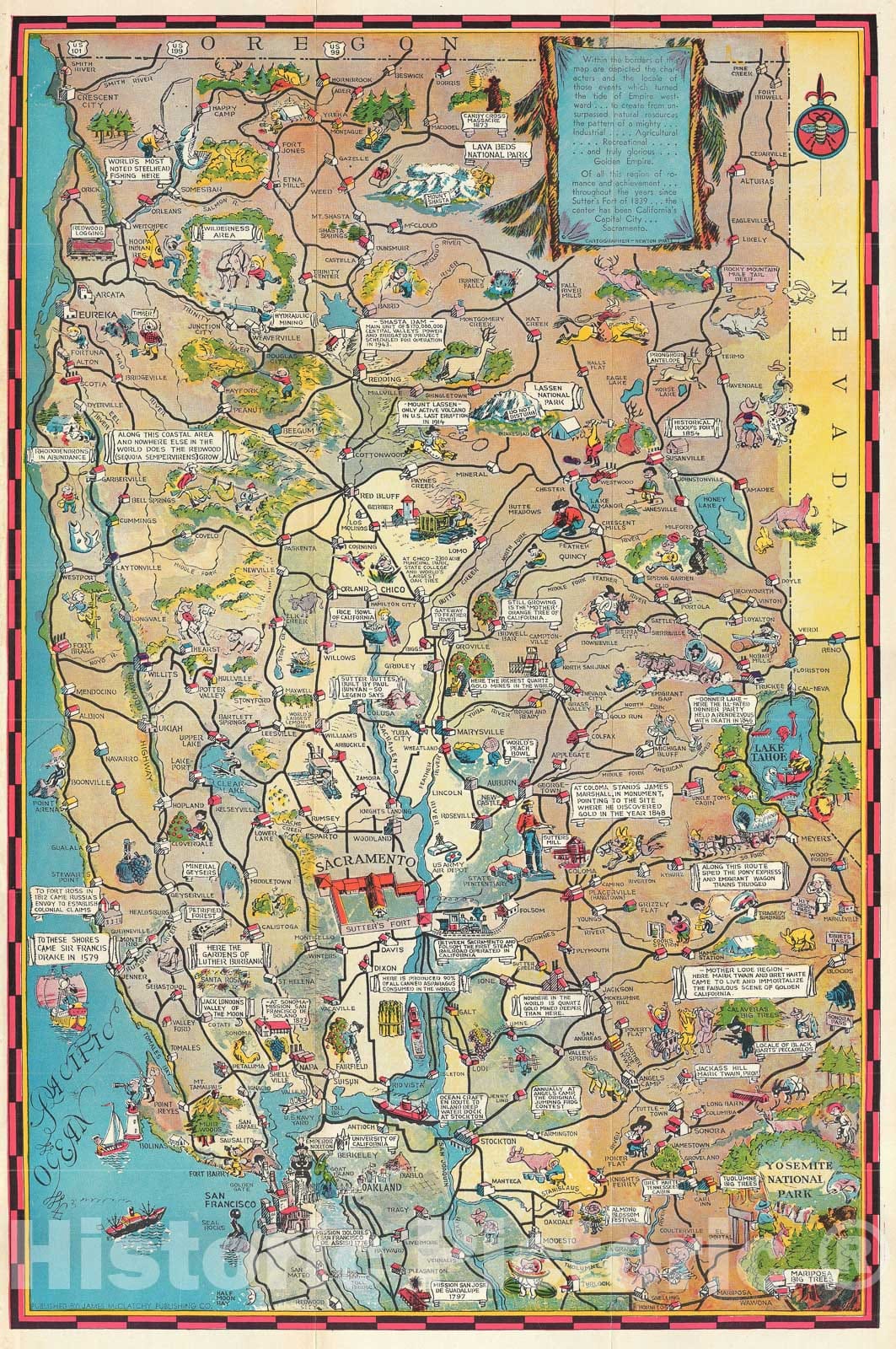 Historic Map : Pictorial Map of The Sacramento Valley, California, Newton Pratt, 1939, Vintage Wall Art