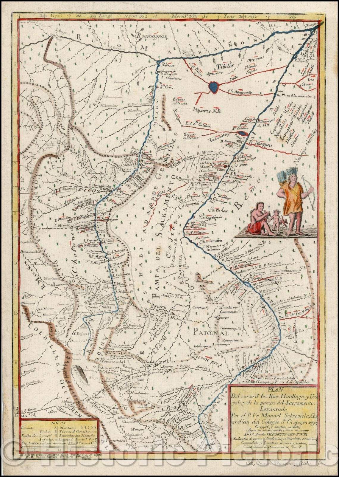 Historic Map - Plan Del curso de los Rios Huallaga y Ucayali, y d la pampa del Sacramento: Levantado Por el P. Fr. Manuel Sobreviela, Guardian del Colegio, 1791 - Vintage Wall Art