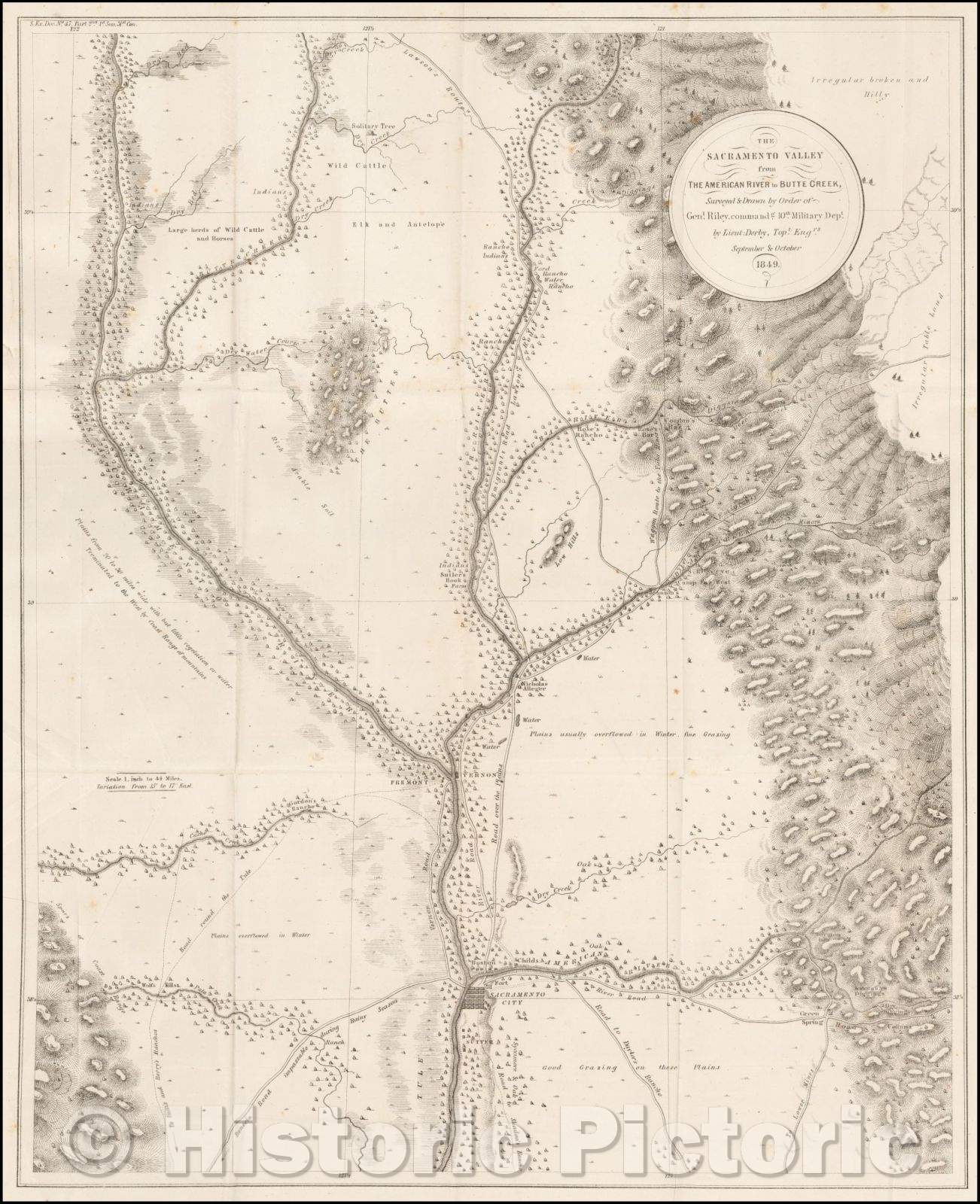 Historic Map - The Sacramento Valley from The American River to Butte Creek, Surveyed &, 1849, George Derby - Vintage Wall Art