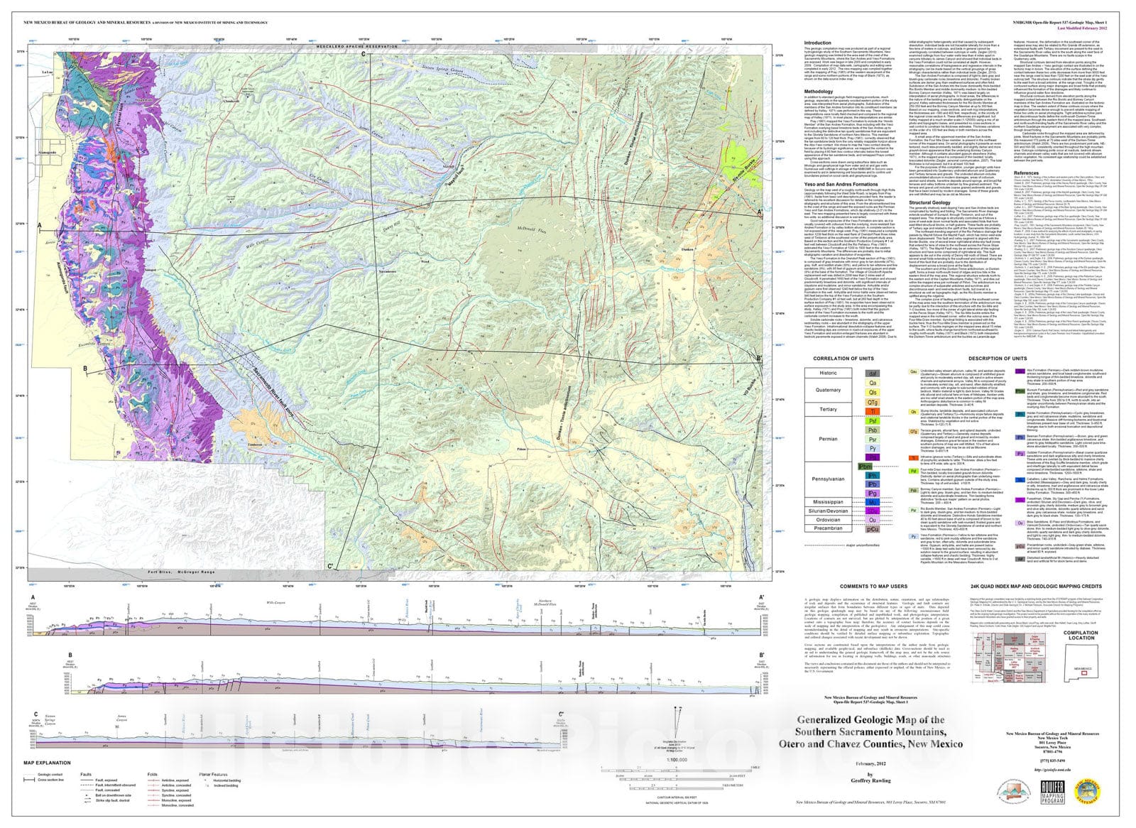 Map : Generalized geologic map of the southern Sacramento Mountains, Otero and Chaves Counties, New Mexico, 2012 Cartography Wall Art :