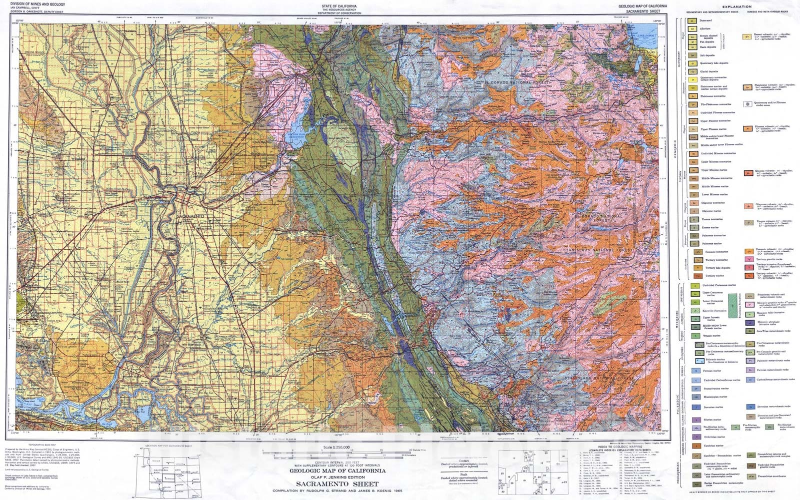 Map : Geologic map of California : Sacramento sheet, 1965 Cartography Wall Art :