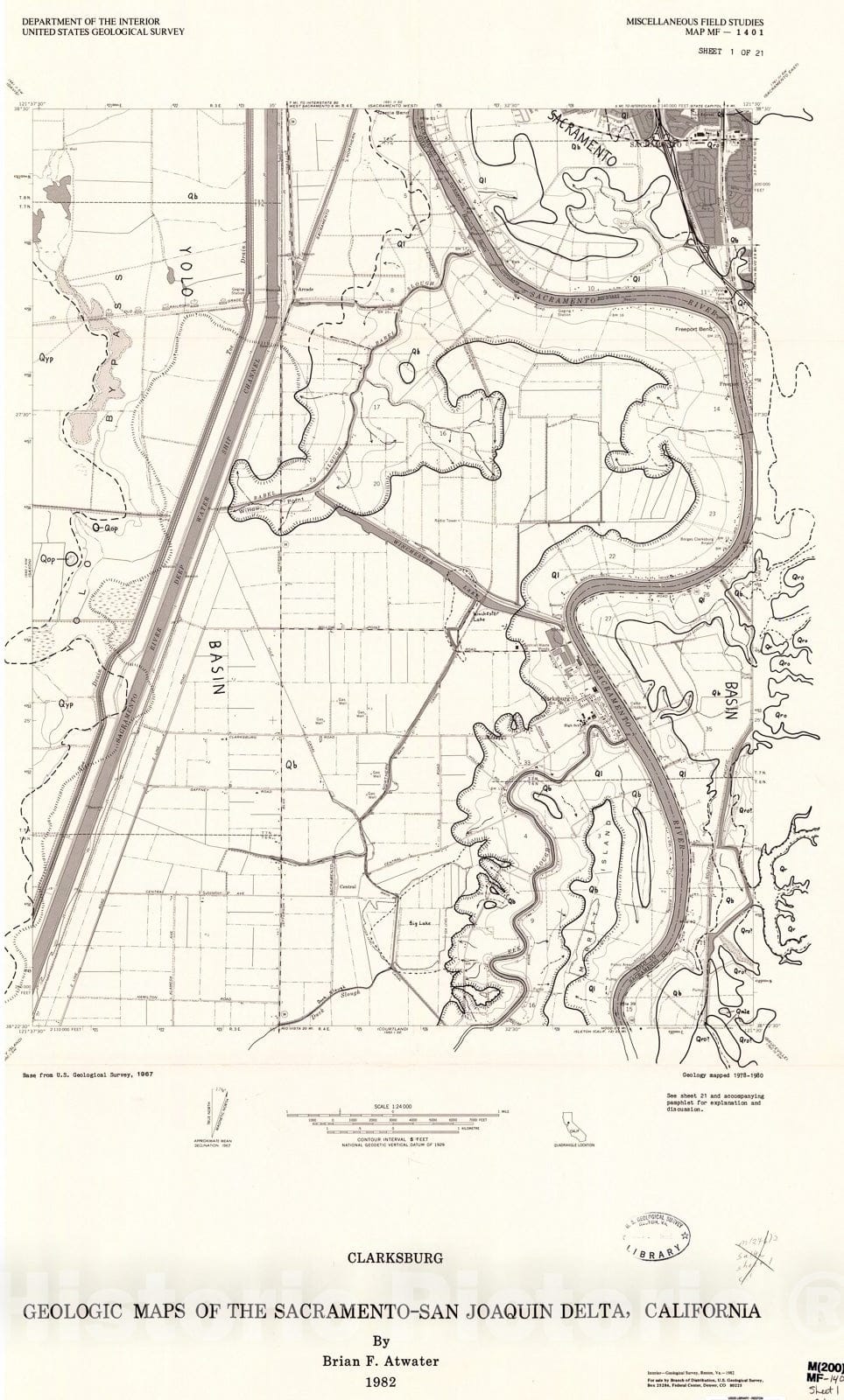 Map : Geologic maps of the Sacramento-San Joaquin Delta, California, 1982 Cartography Wall Art :