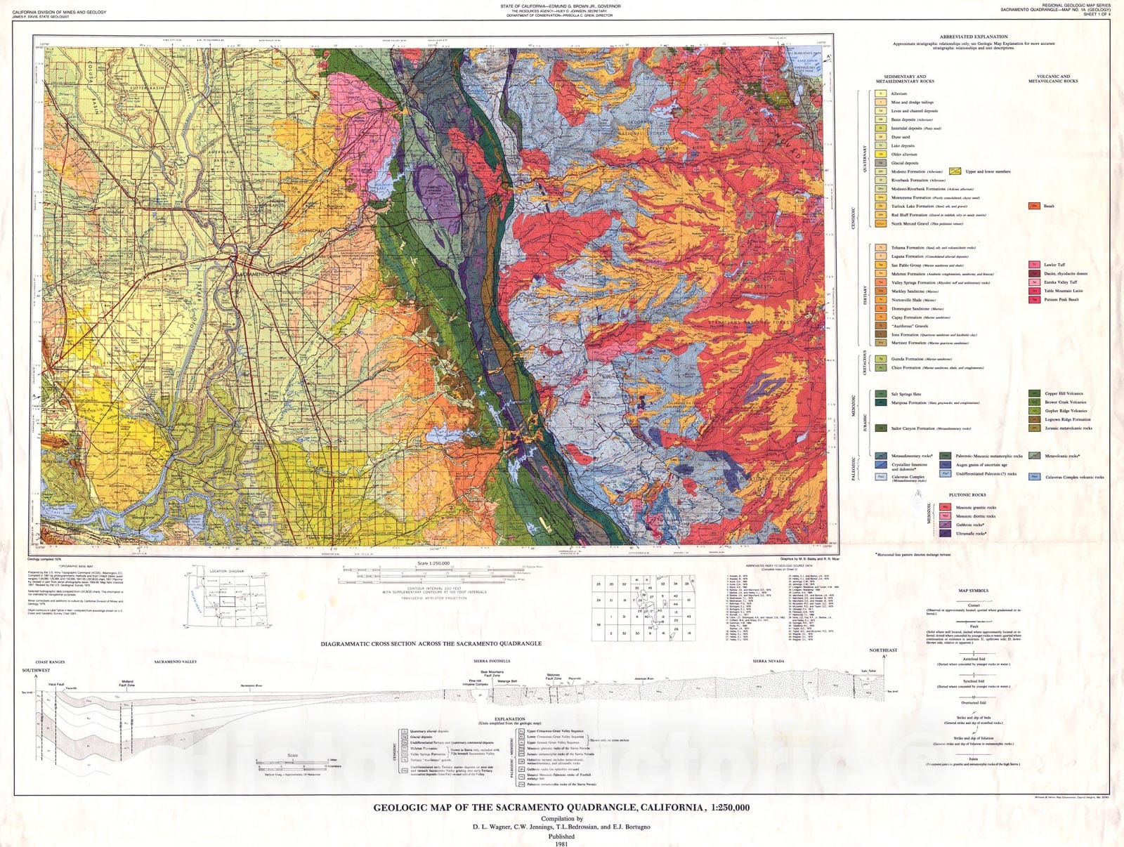 Map : Geologic map of the Sacramento quadrangle, California, 1:250,000, 1981 Cartography Wall Art :