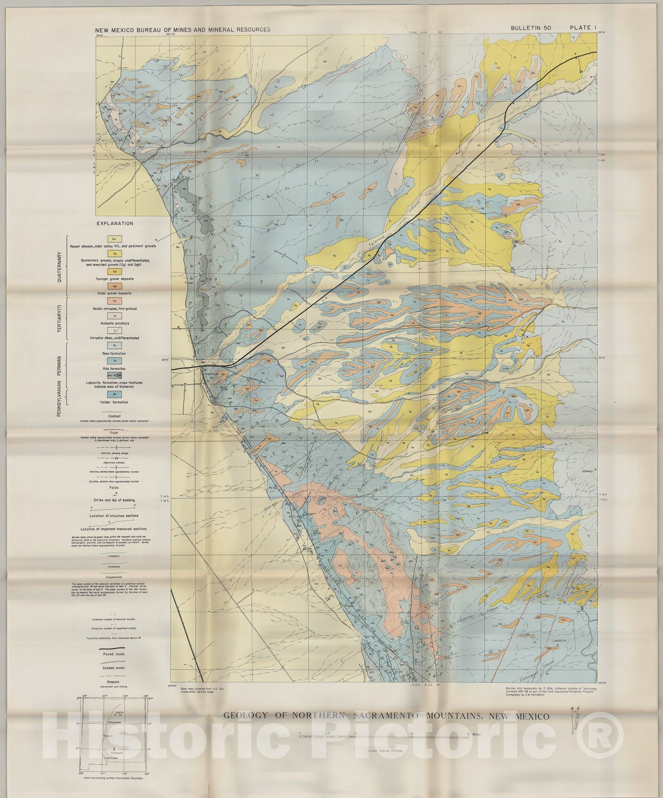 Map : Geology of northern Sacramento Mountains, New Mexico, 1959 Cartography Wall Art :