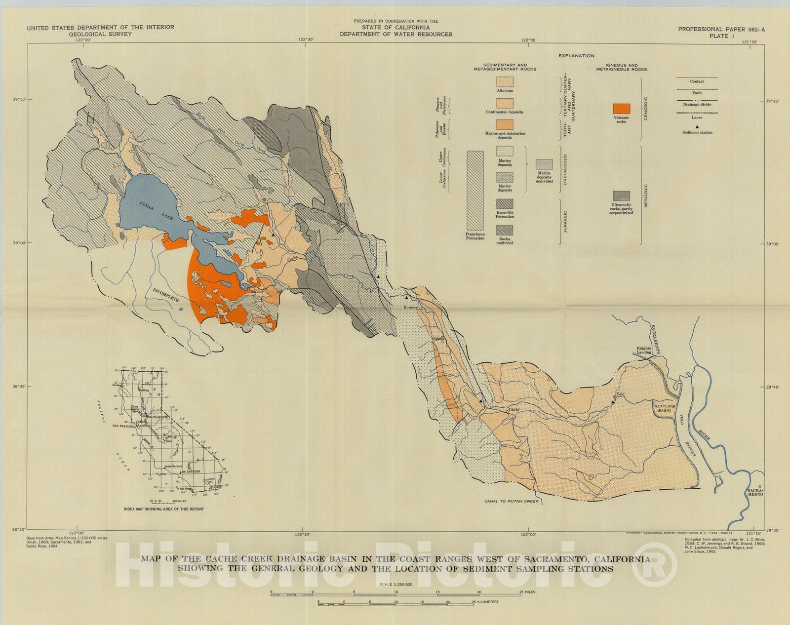 Map : Sediment transport in Cache Creek drainage basin in the Coast Ranges west of Sacramento, California, 1967 Cartography Wall Art :