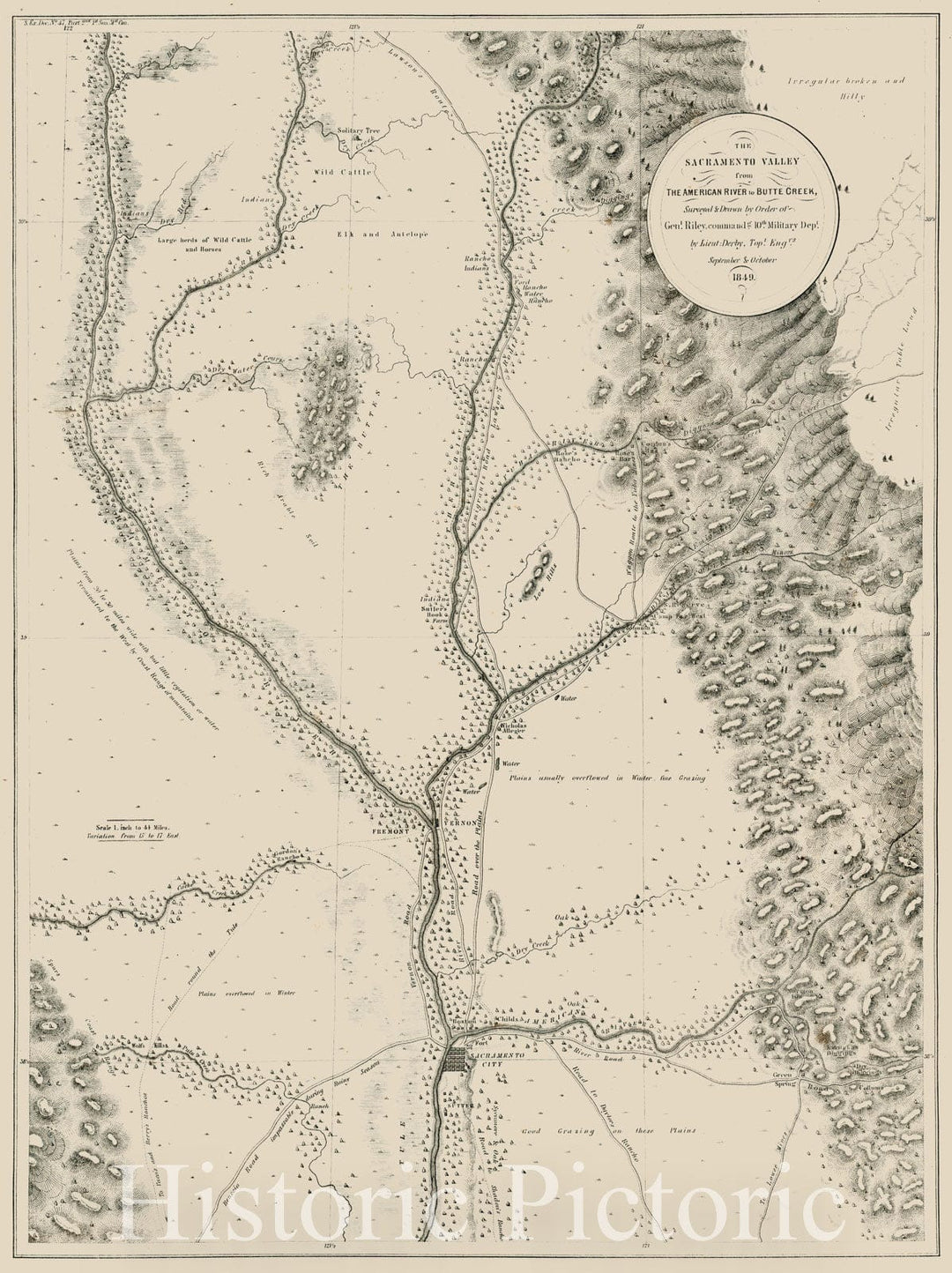 Historic Map - The Sacramento Valley from The American River to Butte Creek, Surveyed &, 1849, George Derby - Vintage Wall Art