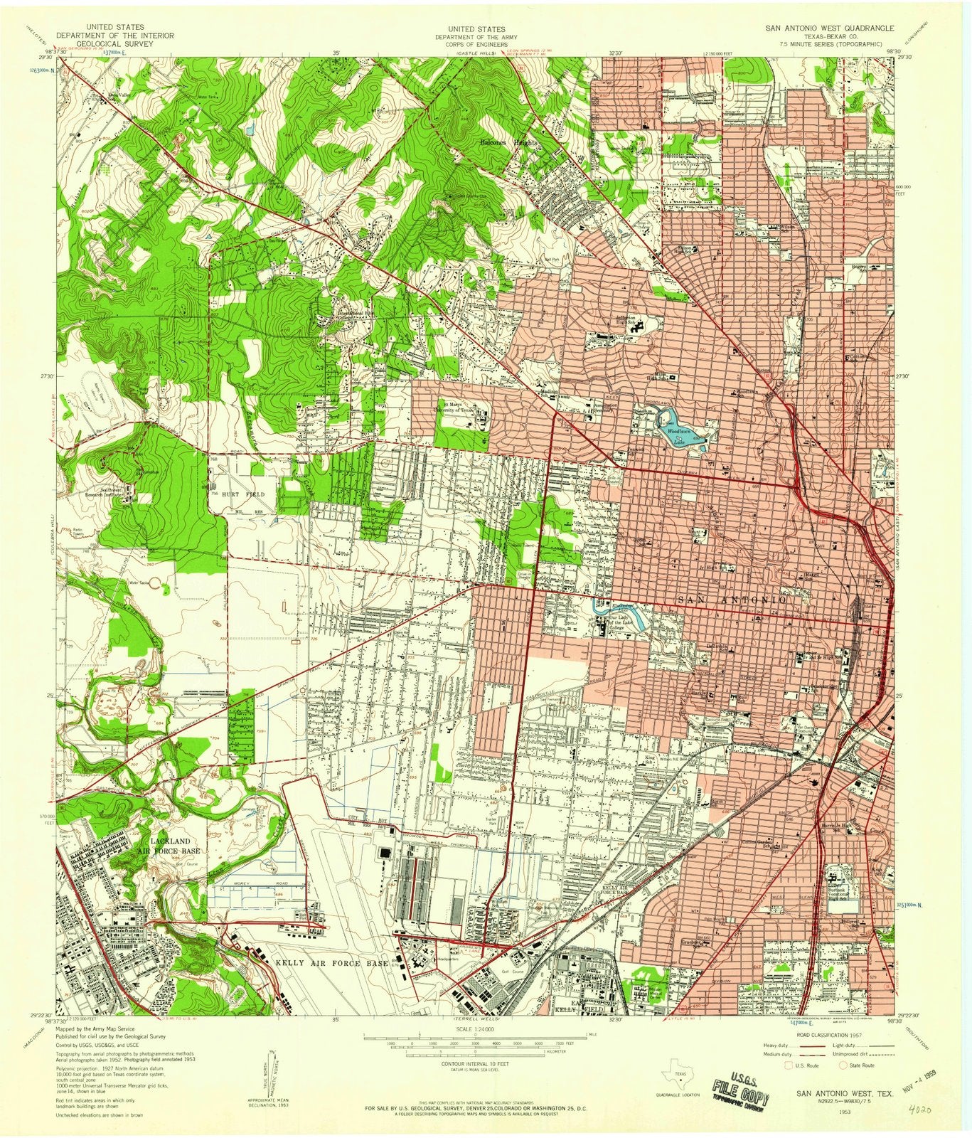1953 San Antonio West, TX - Texas - USGS Topographic Map