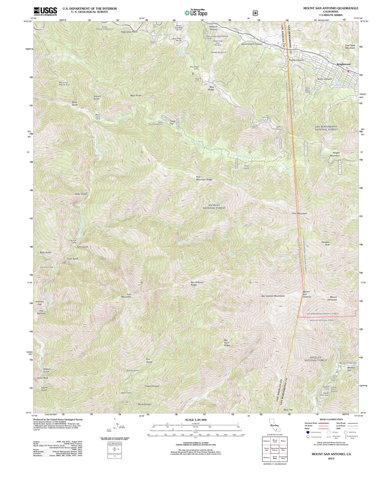 2012 Mount San Antonio, CA - California - USGS Topographic Map
