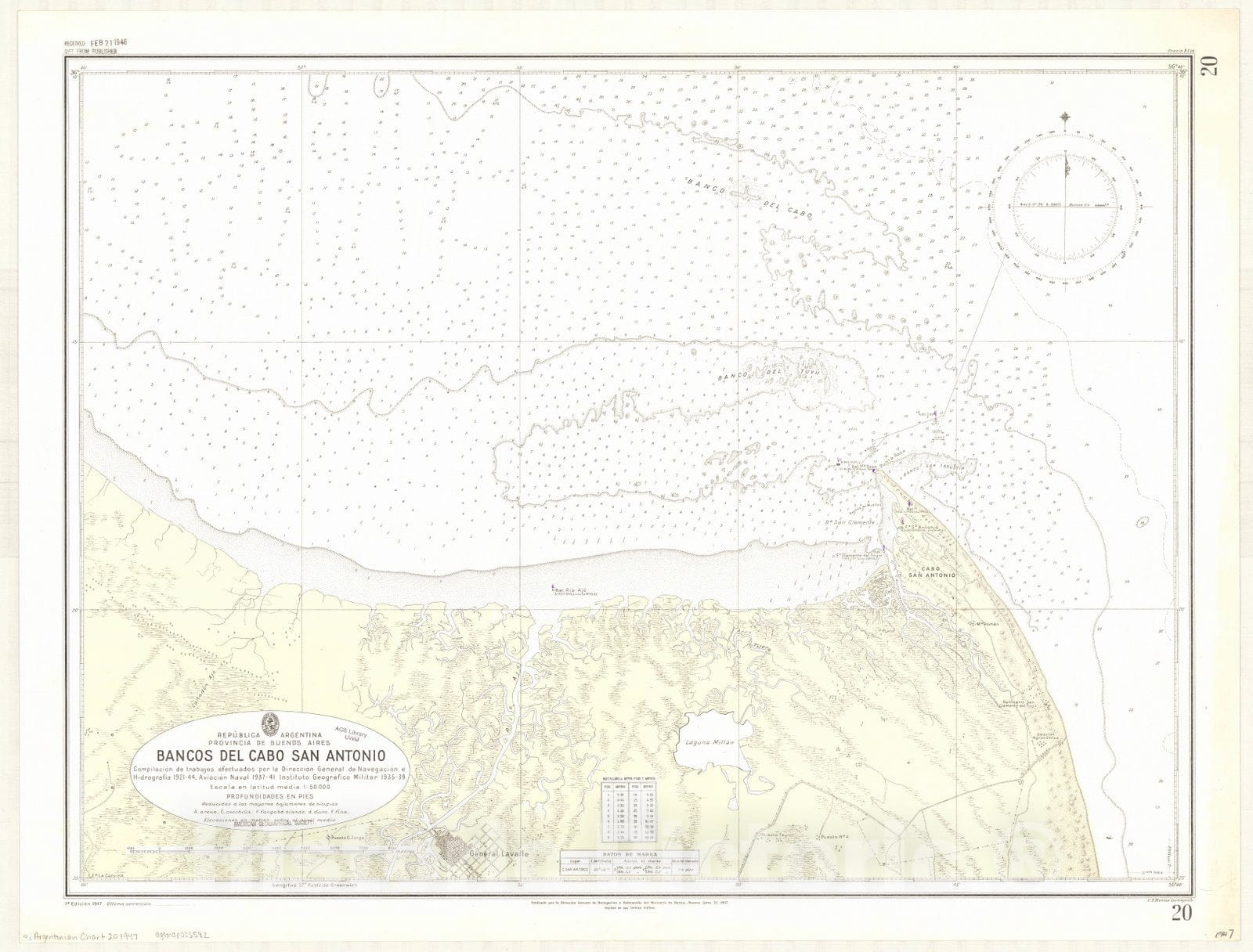 Map : Argentina coast 1947, Republica Argentina, Provincia de Buenos Aires, Bancos del Cabo San Antonio , Antique Vintage Reproduction