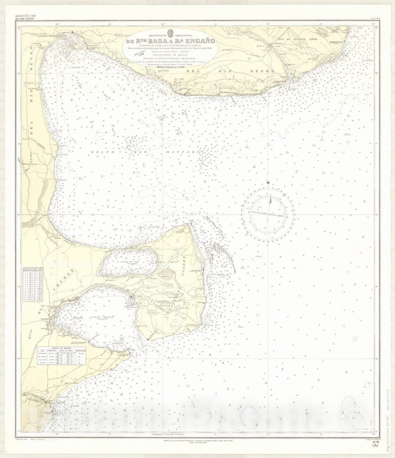 Republica Argentina, de Pta. Rasa a Ba. Engano / compilacion de trabajos de la D.G.N. H. del Ministerio de Marina relevamientos efectuados por la Armada Nacional y Aviacion Naval hasta 1946 ; publicado por la Direccion General de Navegacion e Hidrograf