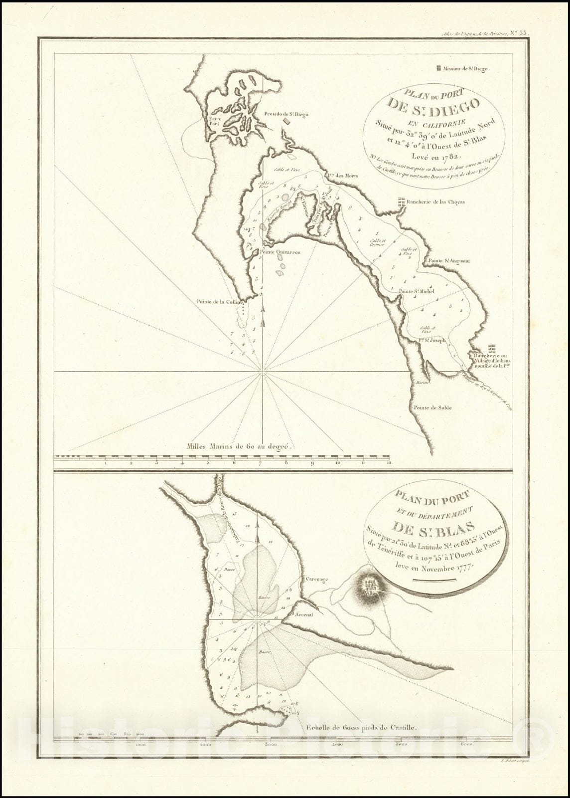 Historic Map : (Earliest of San Diego Bay)Plan du Port De St. Diego en Californie,1782 , Vintage Wall Art