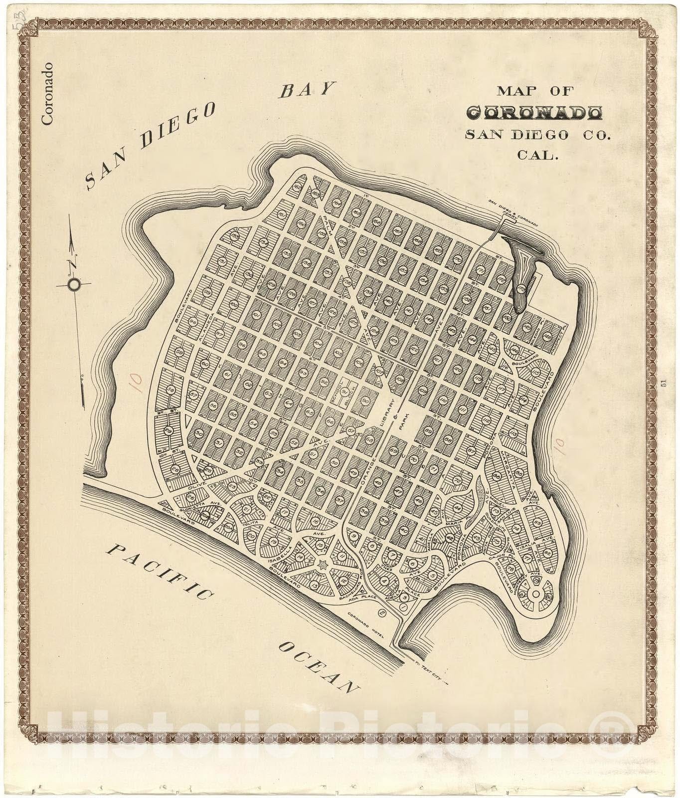 Historic 1912 Map - Plat Book of San Diego County, California - Map of Coronado, San Diego Co. Cal.
