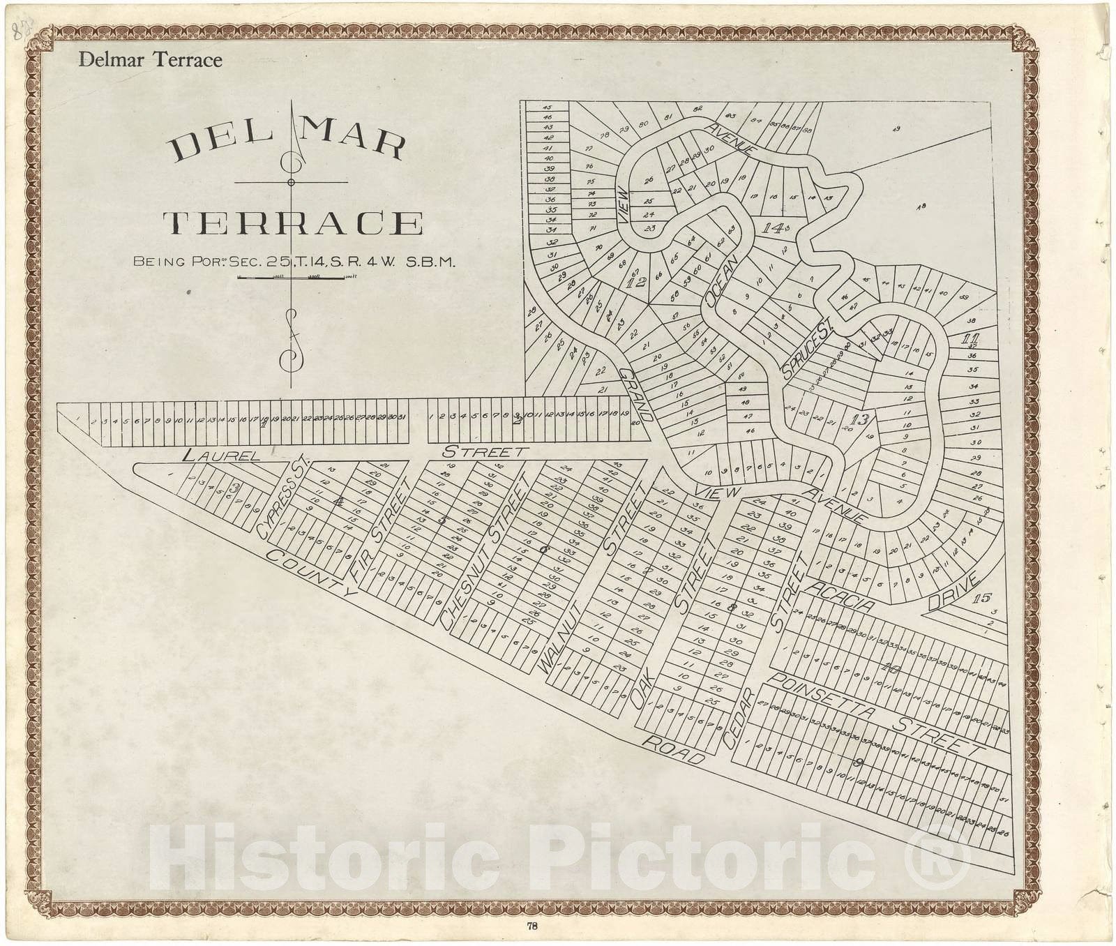 Historic 1912 Map - Plat Book of San Diego County, California - Del Mar