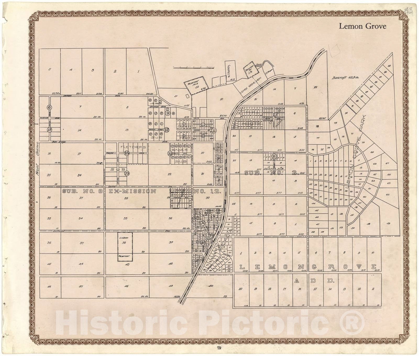 Historic 1912 Map - Plat Book of San Diego County, California - Lemon Grove