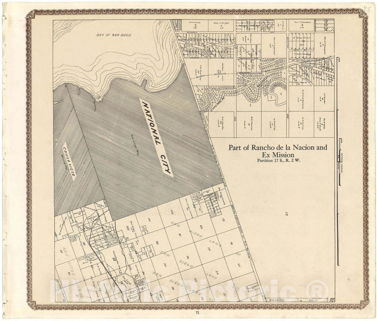 Historic 1912 Map - Plat Book of San Diego County, California - Part of Rancho de la Nacion and Ex Mission