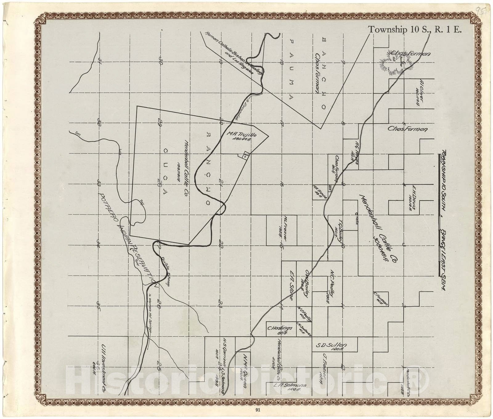 Historic 1912 Map - Plat Book of San Diego County, California - Township 10 S, R. 2 E