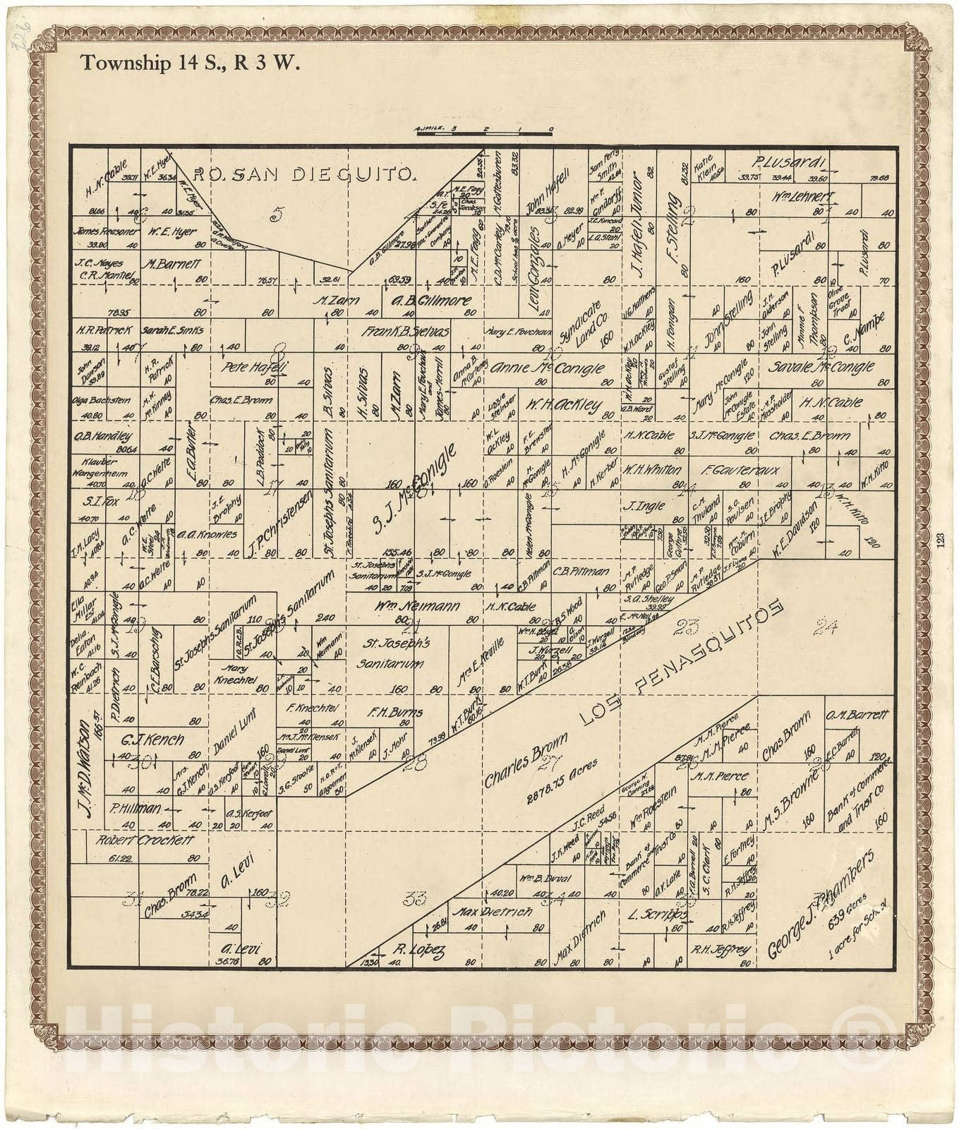 Historic 1912 Map - Plat Book of San Diego County, California - Township 14 S, R. 1 E