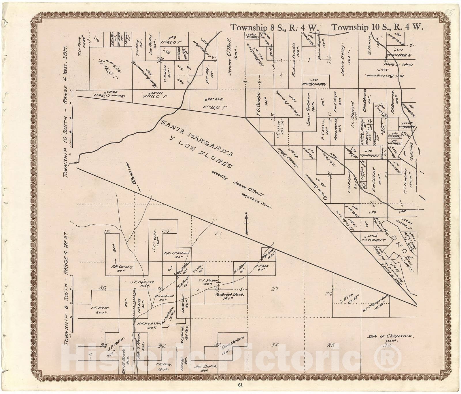 • .Historic 1912 Map - Plat Book of San Diego County, California - Township 8 S, R. 6 W